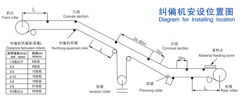 用戶提供皮帶機簡圖(包含總長度,上升段長度,張緊裝置型式和位置,落料的位置數量等數據),我公司會;迅速為您確定安裝糾偏裝置的數量、位置,以方便您編制計劃。