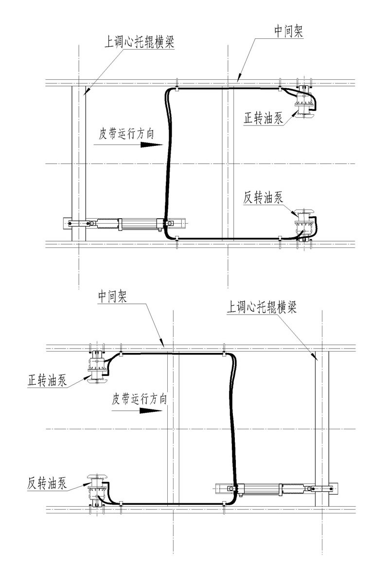 全部安裝完成后,模擬皮帶跑偏,輪流盤動左右檢驅輪,讓油缸帶動調心托輥旋轉,循環5次。
