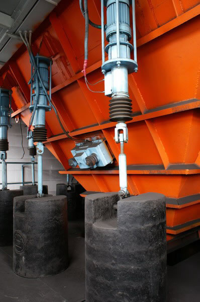 稱量斗本體采用優質鋼板制造。在應力集中點采用加強措施,加強筋采用外筋。稱量斗四周接縫圓滑,稱量斗四壁與水平線的夾角滿足要求,兩壁交匯處圓弧過渡。稱量斗上下口有良好的密封措施。稱量斗安裝振動器,下料完畢及時振動,以免積料。為保證運輸安全、方便,秤體及機架為組合式,秤體和機架在廠內預組裝后現場焊接。