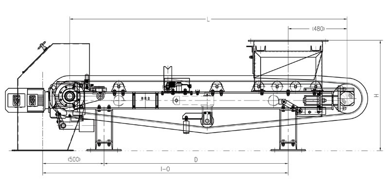 皮帶給料機采用工字形梁作為主支承架,采用槽鋼作為支腿,整體剛度高,穩定性好。主支承架兩側設置皮帶防跑偏開關,以防皮帶跑偏。
