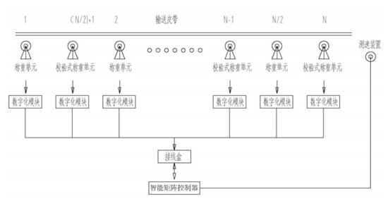 無論矩陣秤處于空載或者帶料狀態,只要智能矩陣儀表判斷系統 個別稱重單元超差,即可自動進行實時自動互校,儀表內部智能數據模型將間隔 提起矩陣秤單元電動砝碼裝置,比對額定砝碼的瞬時量與累積量進行自動修正, 使矩陣秤系統始終保持在高精度狀態穩定運行,真正達到矩陣秤免維護,免人工 干涉的全自動自檢高精度運行狀態。